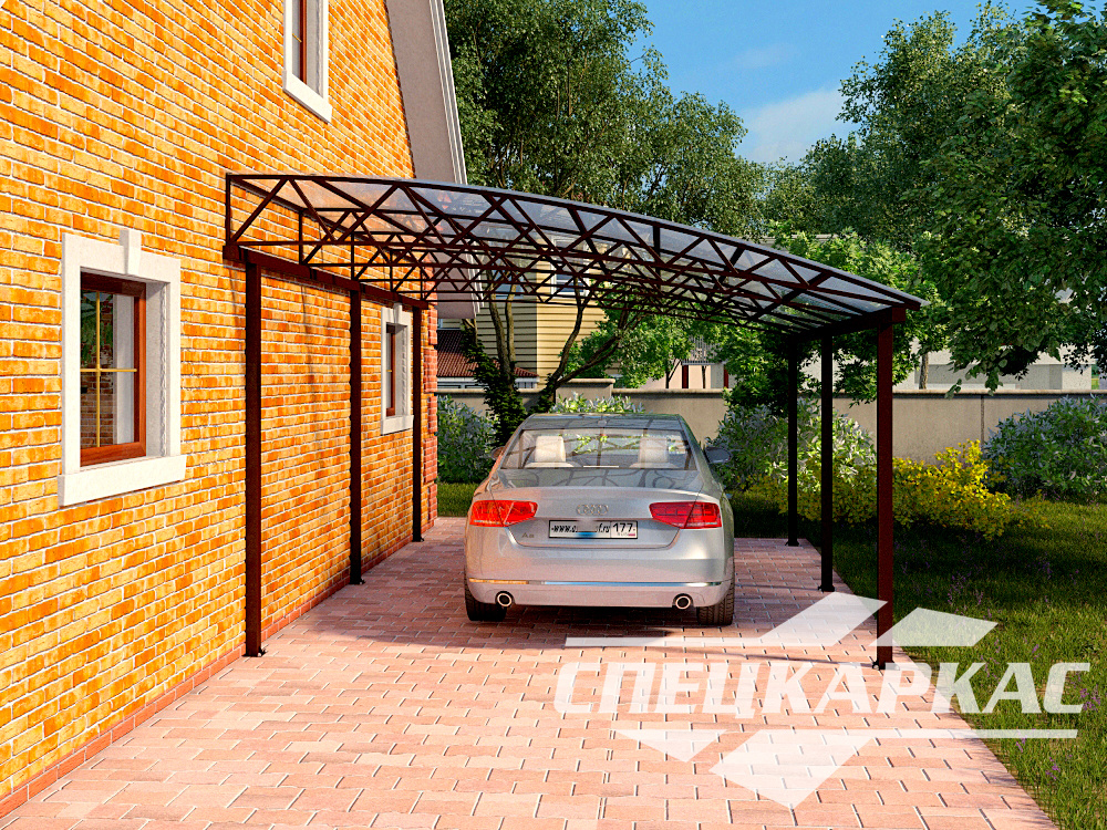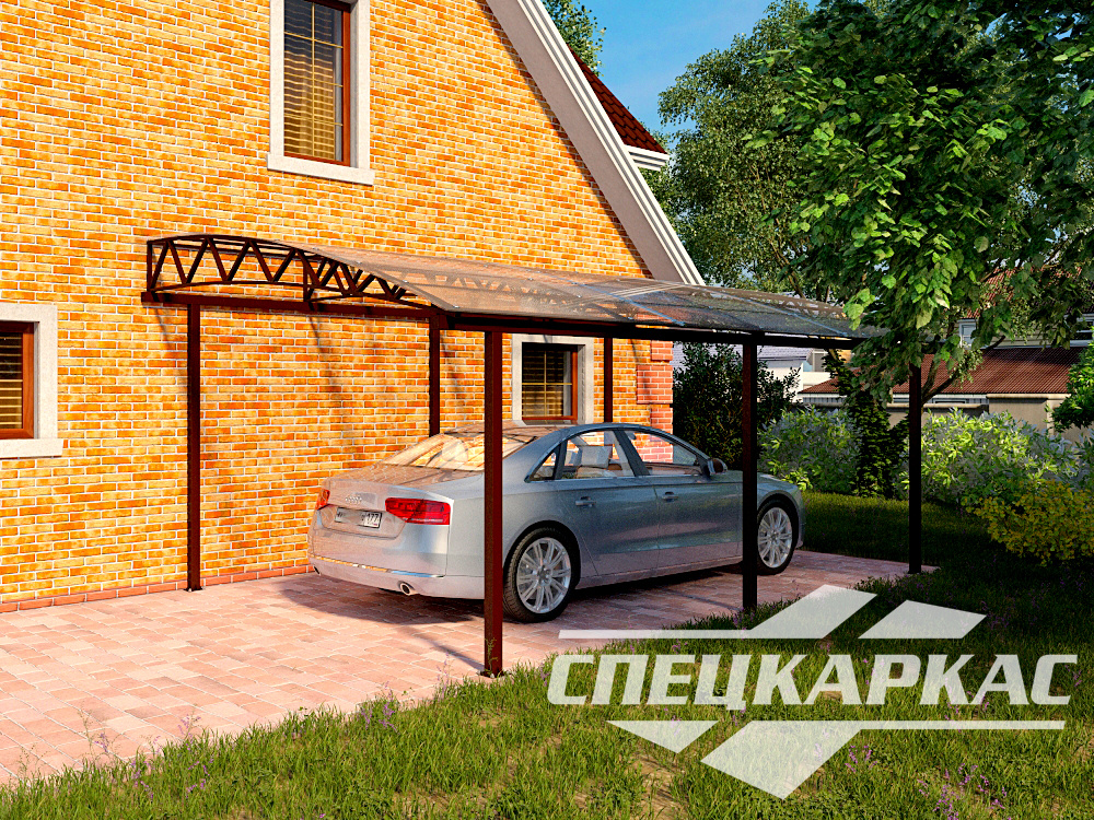 Преимущества данной модели именно в ее простоте. Не понадобится трудоемкий уход. Благодаря гладкой поверхности кровли на крыше не скапливается снег, и не образовываются лужи, что гарантирует длительную герметичность конструкции. Есть возможность выбрать поликарбонат в любом цветовом решении и сделать навес для автомобиля «Рада» изящным элементом архитектурного дизайна загородного участка. Надежное крепление опорных столбов обеспечивает устойчивость навеса, ему не страшен даже ураганный ветер и другие проявления непогоды.